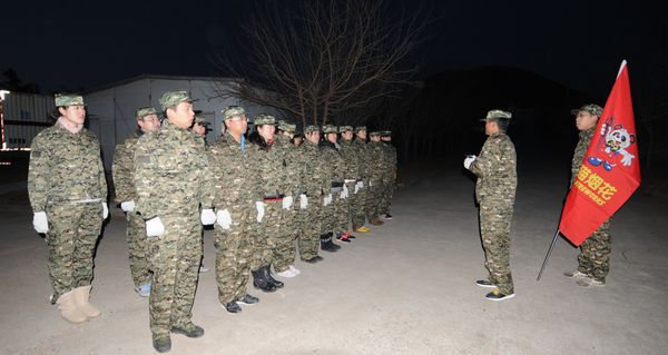 “两脚跟靠拢,脚尖向外分开60度,头要正,颈要直,口要闭,两眼目视正前方”,教官沙哑却铿锵有力的声音在操场上空回荡着,听起来跟军营里别无两样,但这里并非军营,而是熊猫烟花位于房山的仓储基地,正在寒风中经受磨练也不是军人,都是来自北京公司的一众员工。