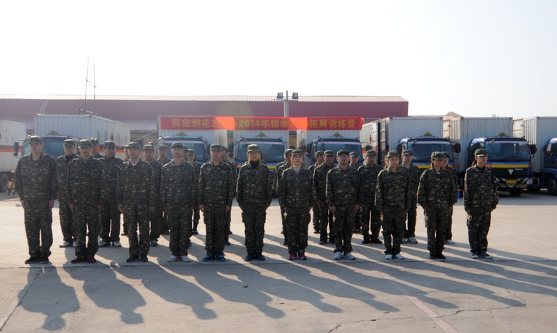 每年销季来临前的军事拓展训练一直是熊猫烟花北京公司的传统,秉承“激情、自信、团结、超越”的理念,10月的最后一个周末中,我们迎来了2014销季开始前的又一次军训活动。25日一早,伴着初升的太阳,就在全国最大的烟花爆竹仓储基地中,一支身着迷彩,整齐划一的“特殊部队”闪亮登场。这支由北京公司全体员工组成的“特殊部队”,在指导教官和总经理潘笛的带领下,开始了为期两天的高强度军事拓展训练。