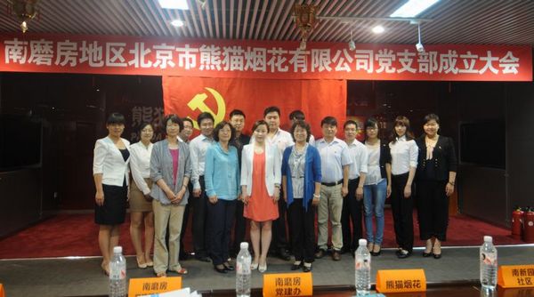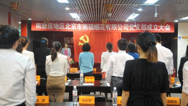 2013年6月月6日,北京市熊猫烟花有限公司党支部成立大会隆重召开。公司总经理潘笛陪同南磨房地区工委领导以及南新园社区的党建工作负责人出席大会,公司18名党员列席会议。