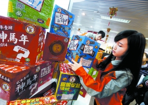 此外,刷卡消费也“移植”到了京城花炮市场。马年春节,所有熊猫烟花直营店都开通“银联”服务,消费者可以刷卡买花炮。