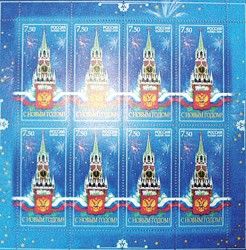 由于一提起烟花,人们首先想到的就是庆典活动,因此在方寸上的烟花,往往会表达良好的祝愿。像美国邮政在1987年发行的问候邮票,其图案就选用的是烟花。俄罗斯邮政在2008年发行的新年邮票上也有烟花。