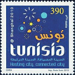 2010年5月1日,随着2010世界博览会在上海拉开帷幕,突尼斯正式发行“2010上海世博会”邮票,用以庆祝和纪念这一世界性盛会在中国上海召开。该邮票面值为390米利姆,采用蓝色背景,主图是在空中绽放的烟花,并分别用阿拉伯语、法语、英语三种语言写着“突尼斯”、“2010上海世博会”和此次突尼斯参展主题“主办城市,连接城市”。